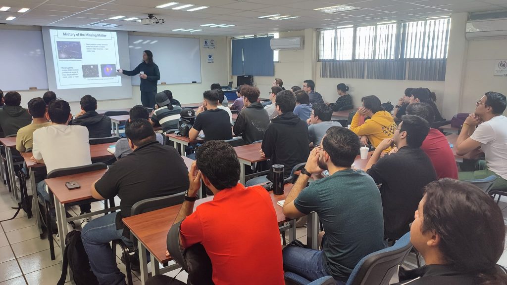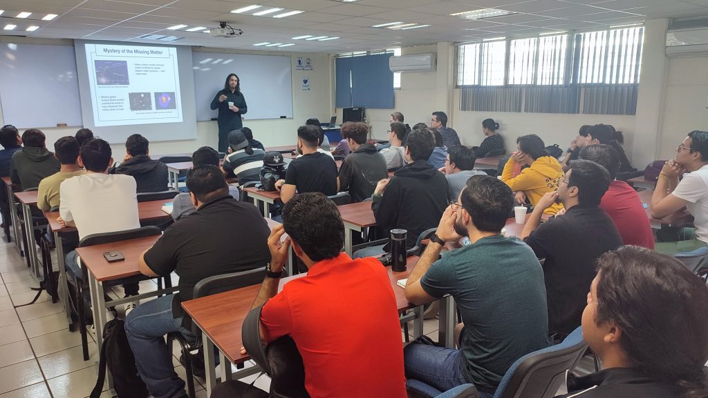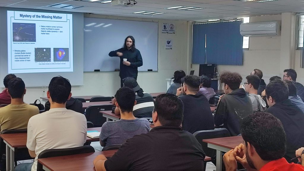 La Facultad de Ciencias Físico – Matemáticas tuvo el honor de recibir al Dr. Patrick Fitzpatrick, del Departamento de Física de Technion, una universidad ubicada en Israel, quien compartió una conferencia fascinante titulada “Nuevas Posibilidades para la Materia Oscura más allá del WIMP”. La conferencia, que formó parte de nuestro prestigioso Seminario Institucional de los Miércoles, atrajo a una audiencia entusiasta compuesta por alumnos y profesores igualmente apasionados por la exploración del cosmos.