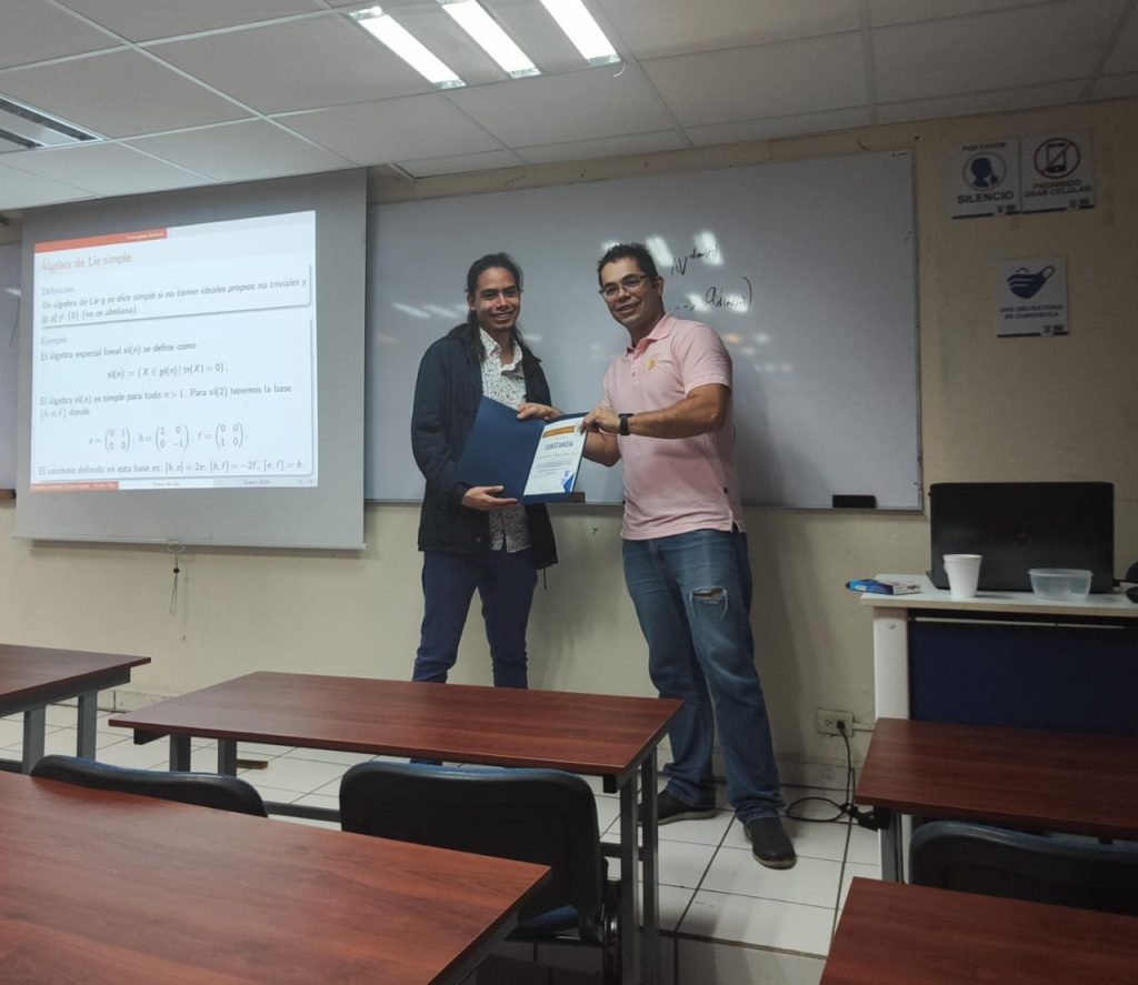 El día 23 de enero el Lic. Eduardo Antonio Torres López, quien nos visita desde el Centro de Investigación en Matemáticas, A.C. compartió con nuestra comunidad la conferencia titulada: “Superálgebras de Lie simples vs. Álgebras de Lie simples”. Agradecemos su visita a nuestra Facultad y la disposición para compartir de sus conocimientos con nuestros estudiantes y profesores.