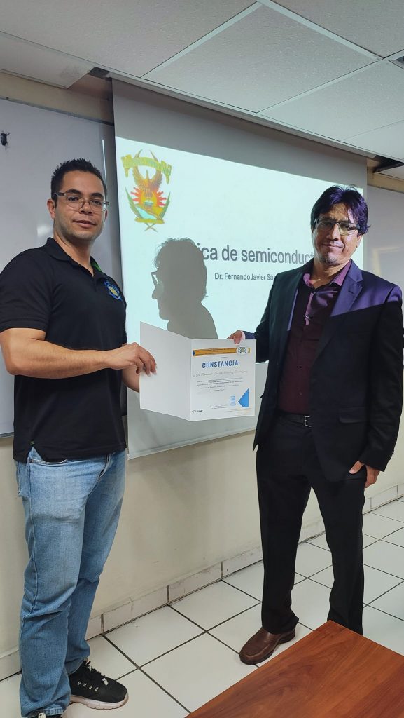 Es un honor agradecer al Dr. Fernando Javier Sánchez Rodríguez por su brillante presentación en la conferencia “Física de Semiconductores”, parte de nuestro Seminario Institucional de los Miércoles. Su dedicación y profundo conocimiento han enriquecido enormemente nuestro entendimiento en este campo tan crucial. Su habilidad para desglosar conceptos complejos de manera clara y accesible es realmente admirable. Estamos profundamente agradecidos por su tiempo y esfuerzo en compartir su experiencia con nosotros. Esperamos con ansias futuras colaboraciones y presentaciones que continúen inspirándonos y expandiendo nuestros horizontes.