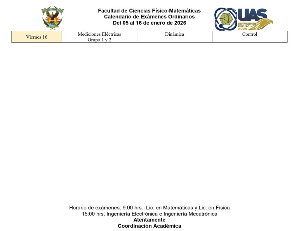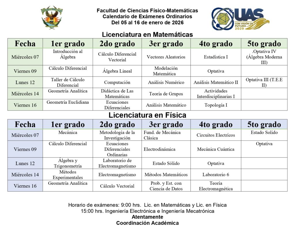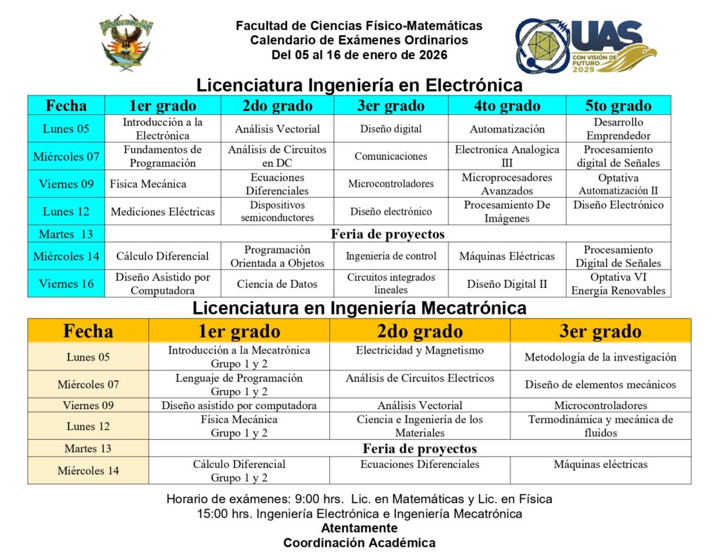 Calendarización de exámenes ordinarios
