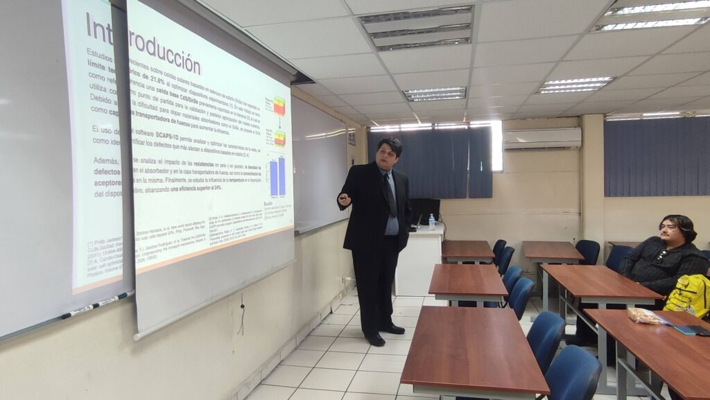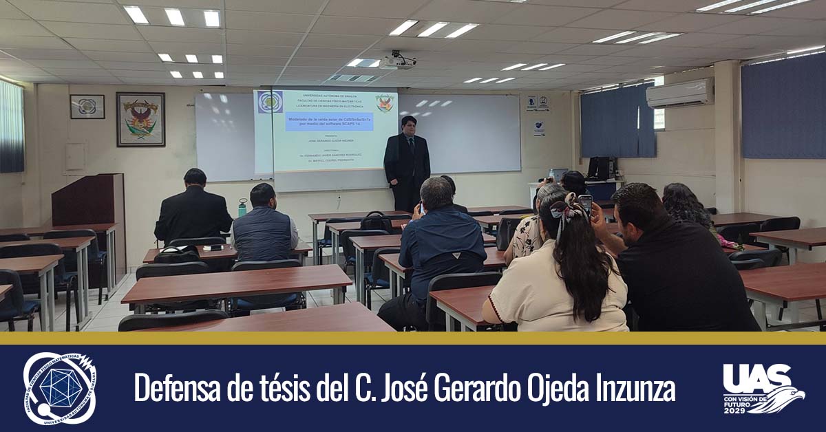 Se llevó a cabo el examen de grado del C. José Gerardo Ojeda Inzunza para la obtención del grado de Licenciado en Ingeniería Electrónica, con su trabajo de tesis titulado: “Modelado de la celda solar CdS/SnSe/SnTe por medio del software SCAPS 1d”, teniendo como directores de tesis al Dr. Fernando Javier Sánchez Rodríguez y al Dr. Maykel Courel Piedrahita.