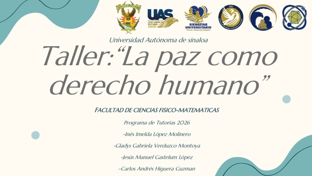 La Facultad de Ciencias Físico-Matemáticas a través del Departamento de Tutorías en coordinación con el programa de Bienestar Universitario UAS ha estado impartiendo una serie de talleres sobre la Cultura de la Paz y Los Derechos Humanos a diferentes grupos de nuestra UA.